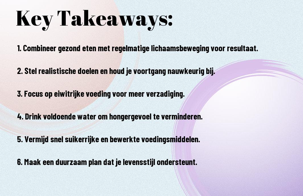 Blijf niet alleen theoretisch leren, maar pas de strategieën ook daadwerkelijk toe in je dagelijkse leven. Set korte termijn doelen voor jezelf, zoals het bijhouden van je maaltijden of het toevoegen van extra beweging in je routine. Wanneer je deze kleine overwinningen viert, blijft je motivatie hoog. Vergeet niet dat gewichtsverlies een persoonlijke reis is, waarbij je jezelf niet te zwaar moet straffen. Wees trots op de voortgang die je maakt en geef jezelf ruimte voor fouten; ze zijn immers deel van het proces. Op lange termijn leiden deze holistische benaderingen tot duurzame resultaten en een gezonder leven.