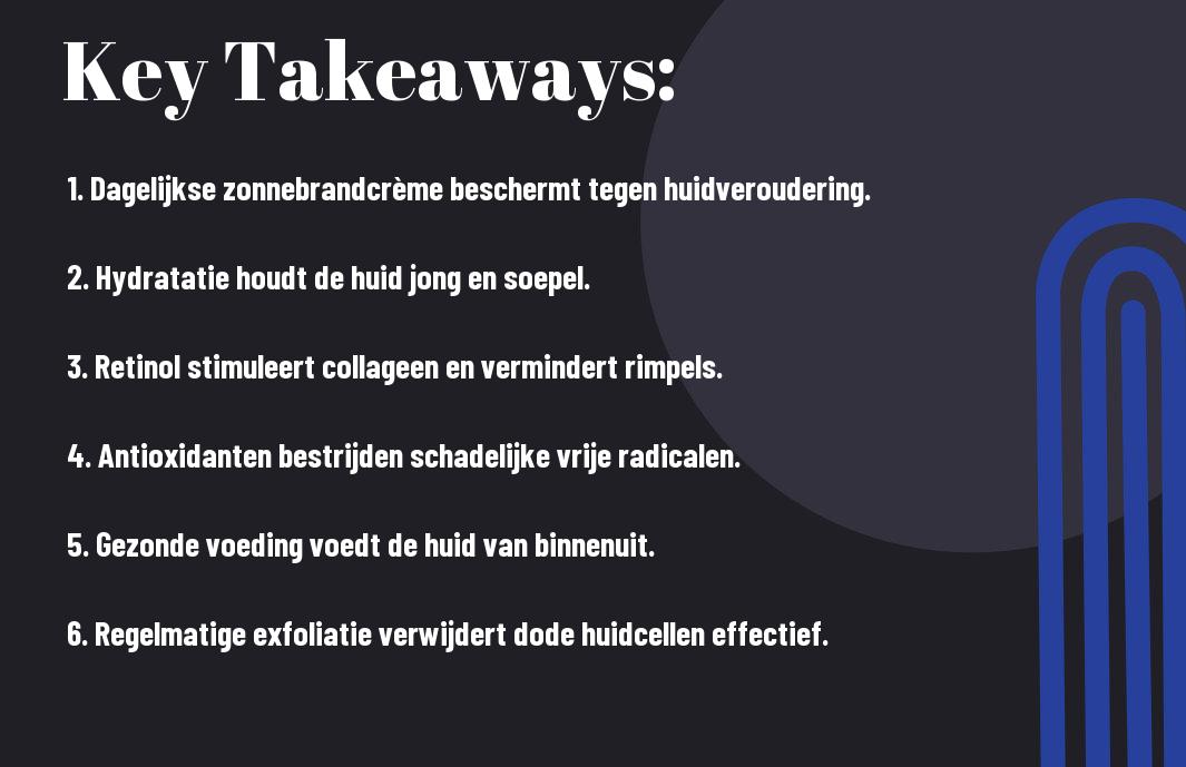 Huidverzorgingsproducten vormen een essentiële schakel in de strijd tegen veroudering. Door de juiste combinatie van ingrediënten kun je tekenen van veroudering effectief aanpakken en je huid hydrateren. Het gebruik van producten met specifieke werkstoffen kan de elasticiteit, textuur en algehele uitstraling van je huid aanzienlijk verbeteren. Denk hierbij aan een goed huidreinigingssysteem dat je huid niet alleen ontdoet van vuil, maar ook voorbereidt op de opname van actieve ingrediënten. Het creëren van een consistente routine, waarbij je regelmatig verschillende producten toepast, versterkt dit effect.