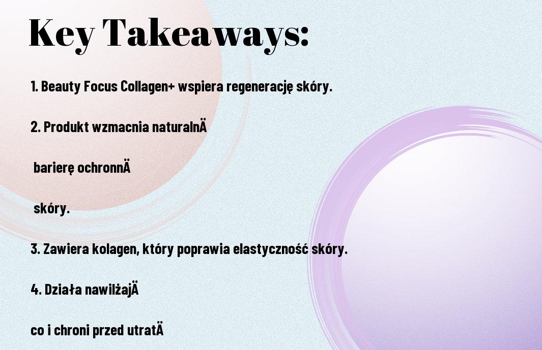 - Beauty Focus Collagen+ może wspierać produkcję kolagenu, co przyczynia się do wzmocnienia bariery ochronnej skóry.