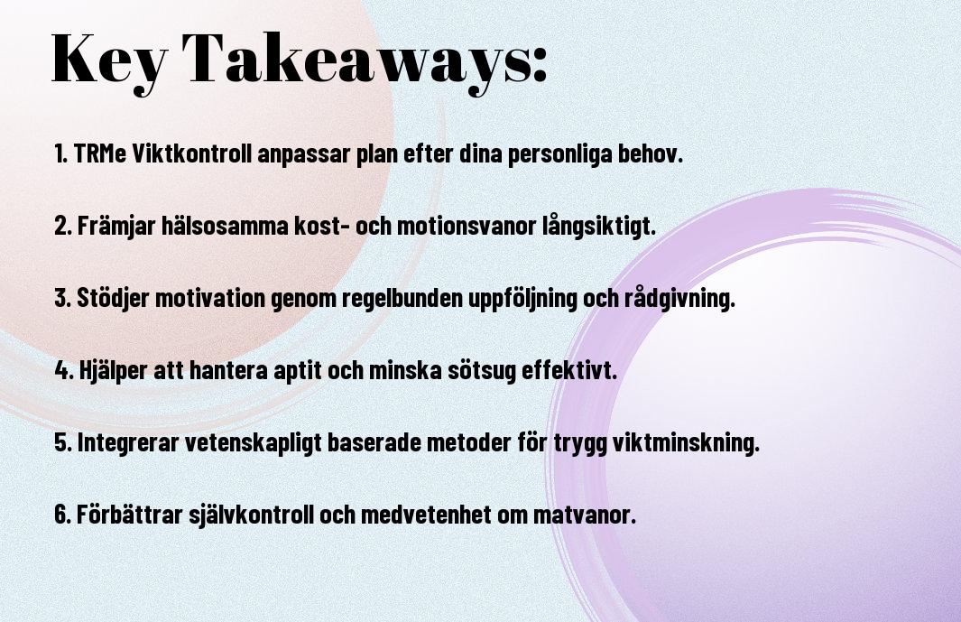 Genom att använda TRMe Viktkontroll kan du få en skräddarsydd strategi för att nå dina viktminskningsmål. Systemet fokuserar på att spåra din kost och aktivitetsnivå, vilket ger dig en tydlig översikt av dina framsteg. Statistiskt sett har användare av TRMe sett en genomsnittlig viktminskning på 5-10 kg inom de första tre månaderna, vilket visar på dess effektivitet. Med hjälp av insikter baserade på din personliga data, kan du lära dig mer om vad som fungerar för just dig. Det handlar inte bara om att gå ner i vikt, utan att bygga en hållbar livsstil för framtiden.