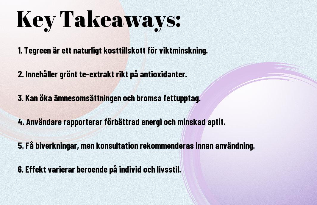 - Studier visar att Tegreen kan bidra till viktminskning och förbättrad ämnesomsättning, men individuella resultat kan variera.